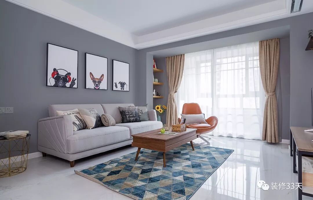 ▲ 铺一张蓝灰基调大地毯,呈现完整的北欧调软装空间