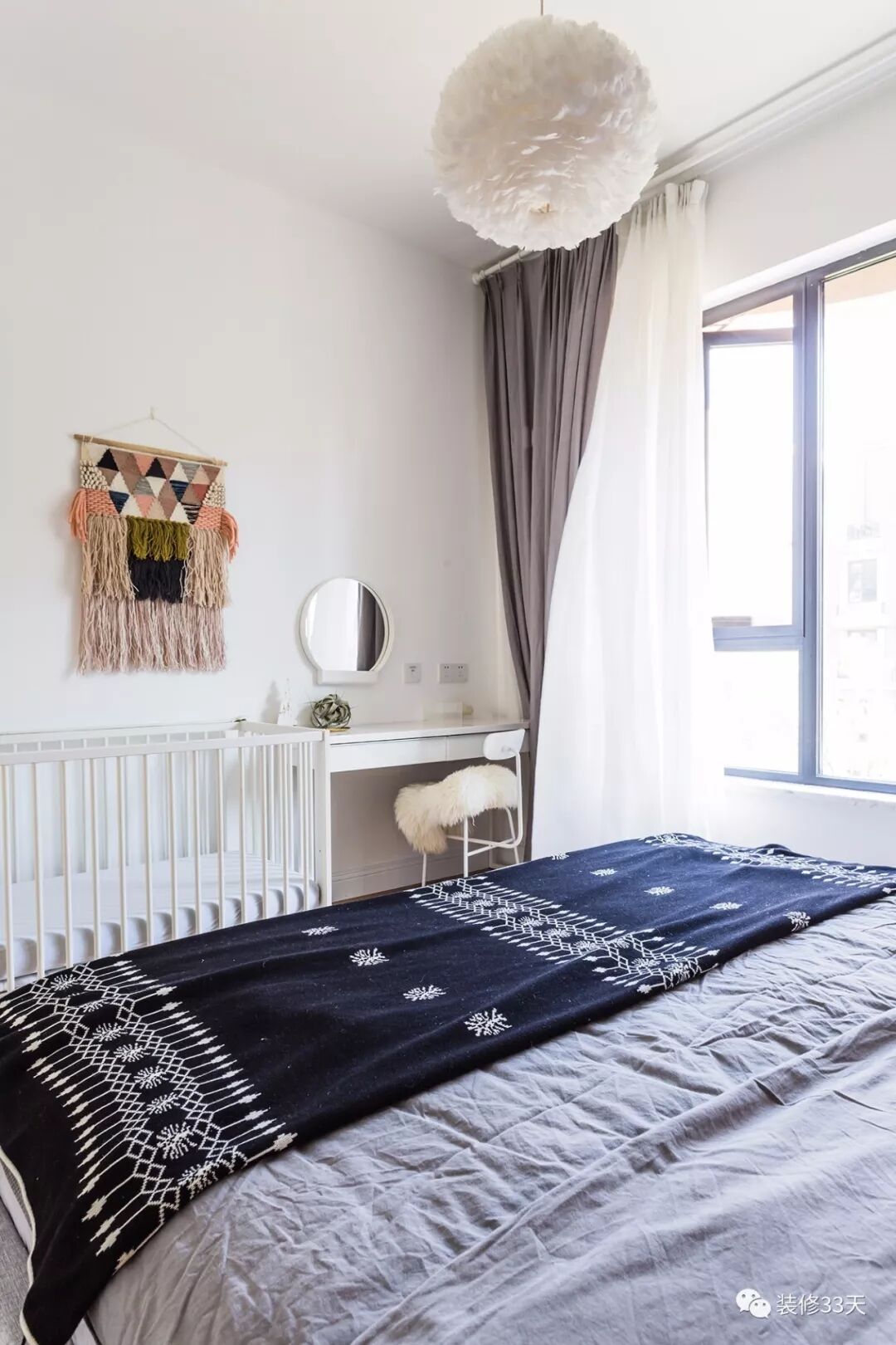 ▲ 床尾设置梳妆区与摆放1岁女儿的婴儿床