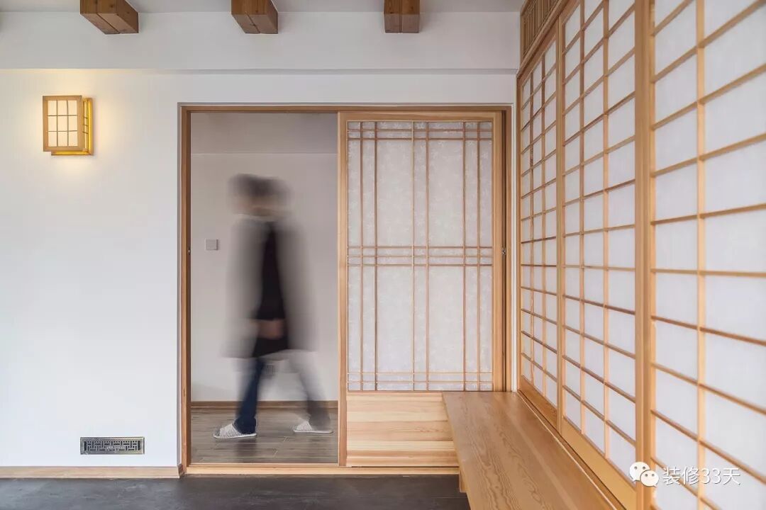 ▲ 木色栏栅是移门增添轻盈的日式元素