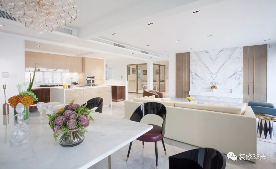 大理石其实缺点也很明显,多数表面有孔隙,容易渗污,所以白色系的大理石我不建议用在地面、厨卫等容易脏的空间,用来做背景墙立面还是不错的选择。地面想要类似效果,建议用大理石瓷砖代替。