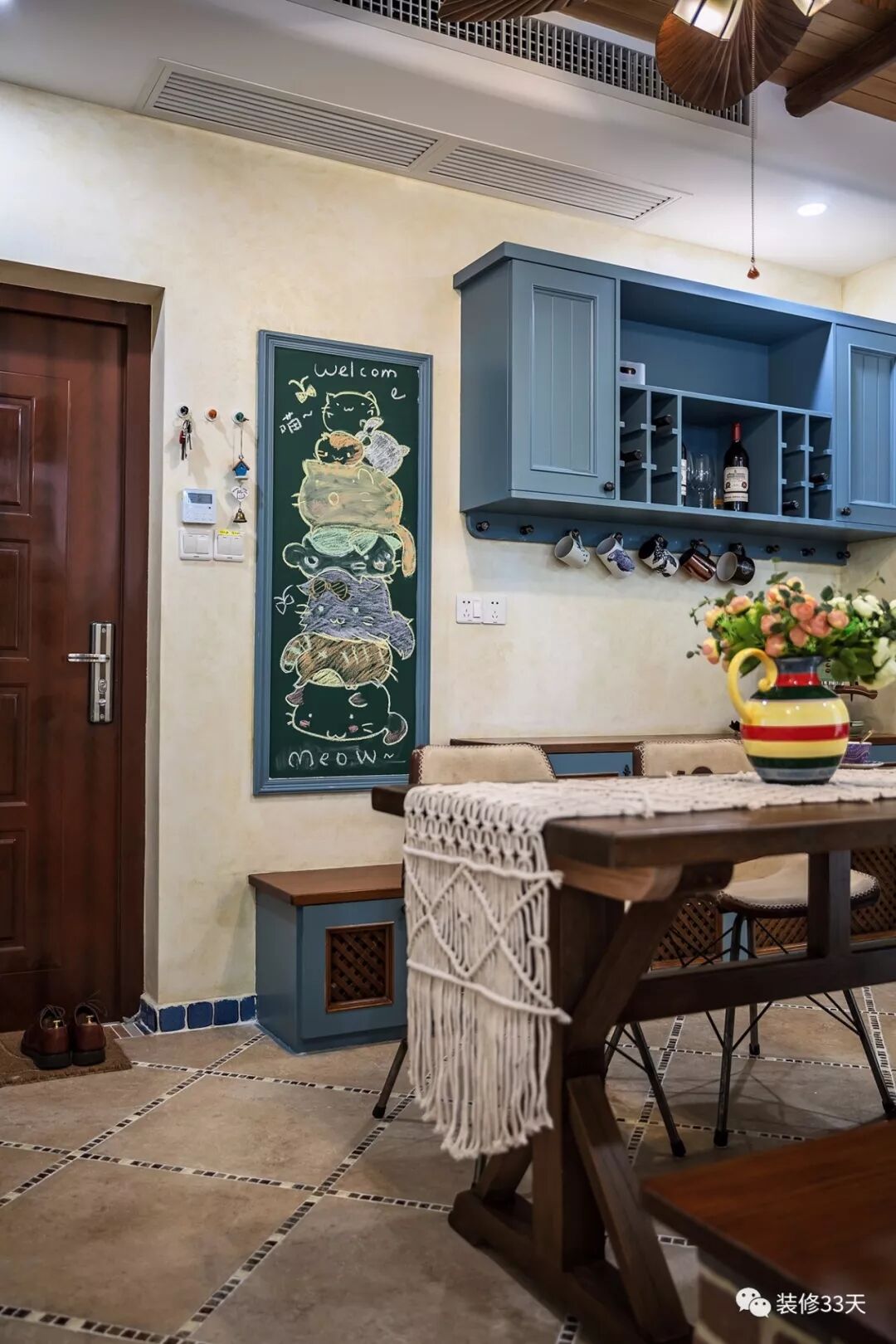 ▲ 建筑面积90平,总造价40万,入户左侧上下两组柜子组合出换鞋凳,餐边柜与酒架的功能