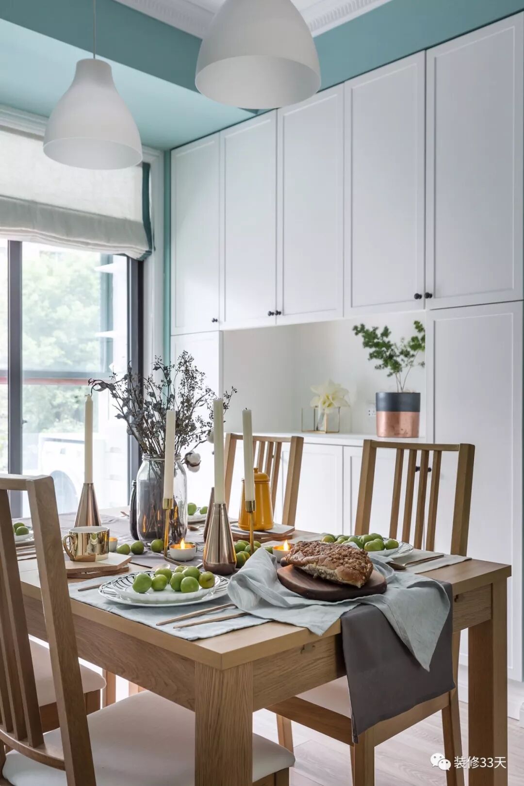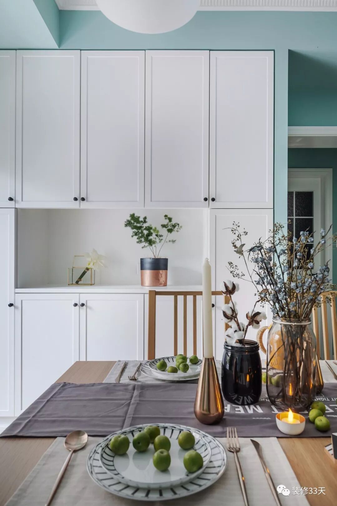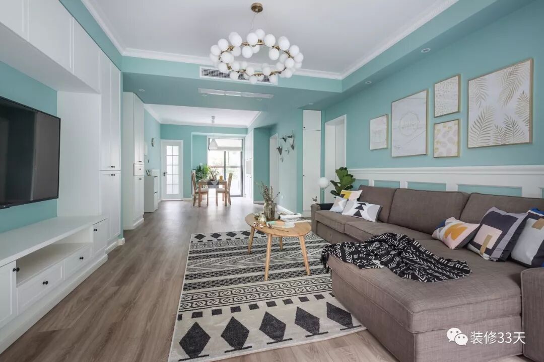 ▲ 使用面积110平,造价30万(不含家具家电),设计师以Tiffany蓝为主题,打造清新纯粹的居家环境