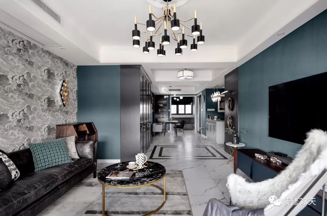 ▲ 客厅使用浓郁但又不失生机的墨绿色,是一种独特而又复古的色调,恰到好处的介于复古和时尚之间