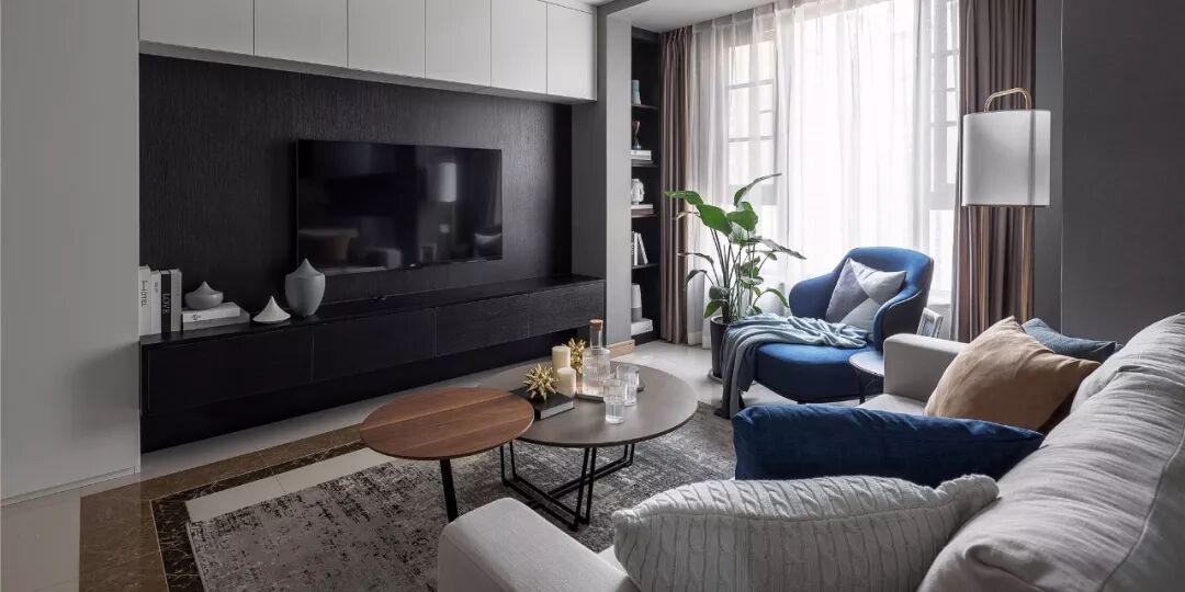 ▲ 素色大面积使用,平衡空间比例,体现新中式不偏不倚