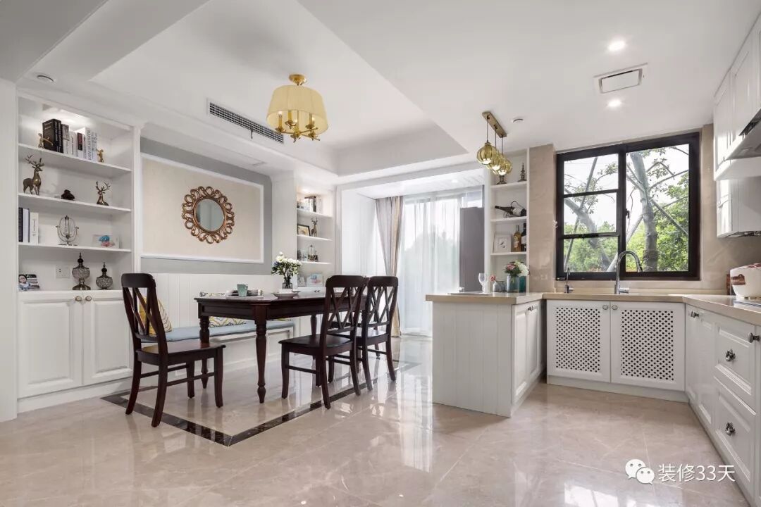 ▲ 餐厅利用卡座设计,释放过道的空间,左右设计餐边柜既实用也需要考虑到美观性
