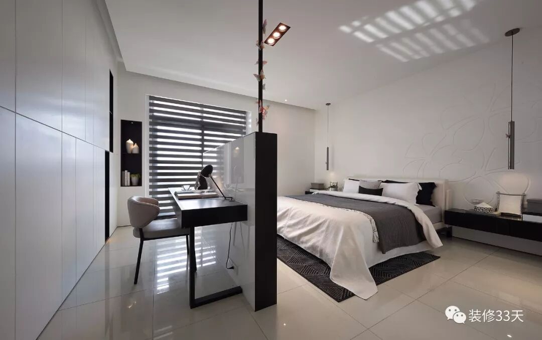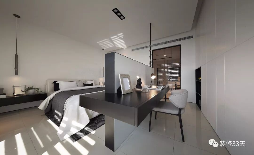 ▲ 主卧延续现代简约的风格,用一面隔墙分出一个办公阅读区