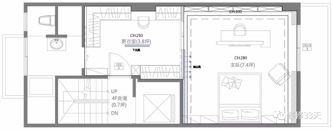 ▲ 主卧衣帽间采用开放式的设计,区域的划分与樘板巧妙分割,提供储物与梳妆台机能