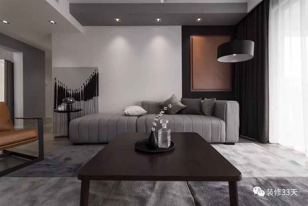 ▲ 使用面积130平,整体设计以黑白灰为基调,打造质感优雅的都市简约居家风