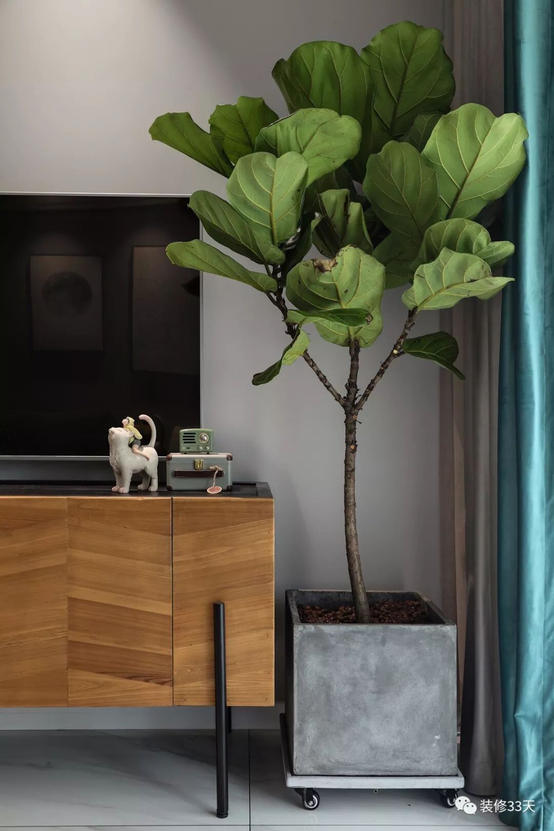▲ 灰色基调将木色与绿植映衬的高级且有生机