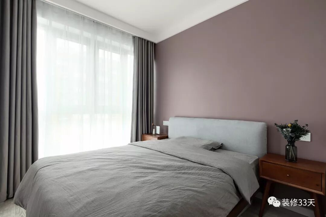 ▲ 父母房一面粉紫色背景墙打破传统的深色调