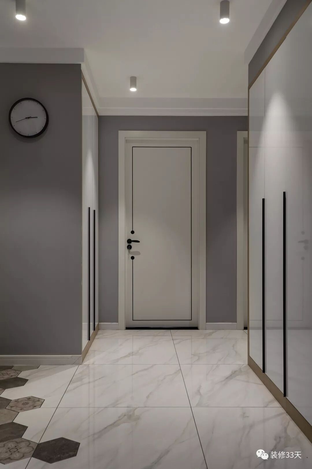 ▲ 入户门与地面六边砖的设计为空间增添美观与趣味性