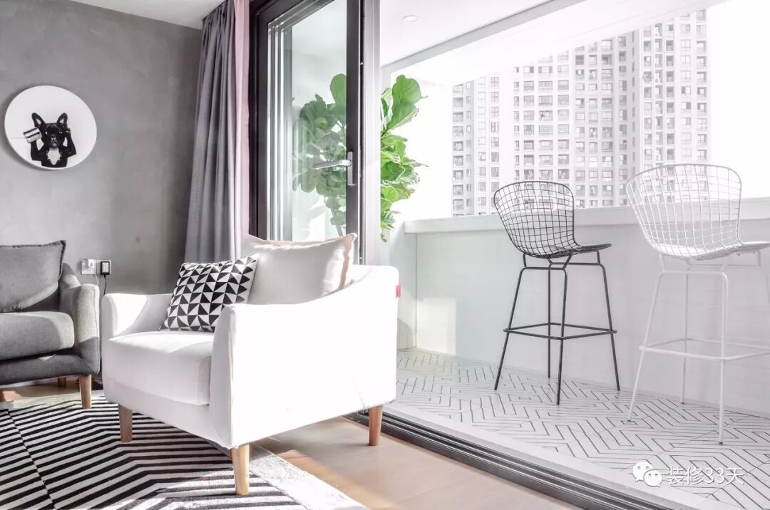 ▲ 大面积落地窗隔断了客厅和阳台
