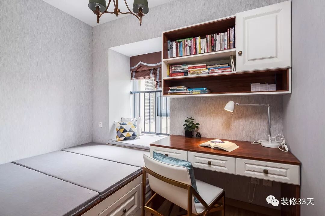 ▲ 多功能房空间不大,榻榻米连接飘窗,一旁按尺寸设计书桌书柜,功能与颜值缺一不可