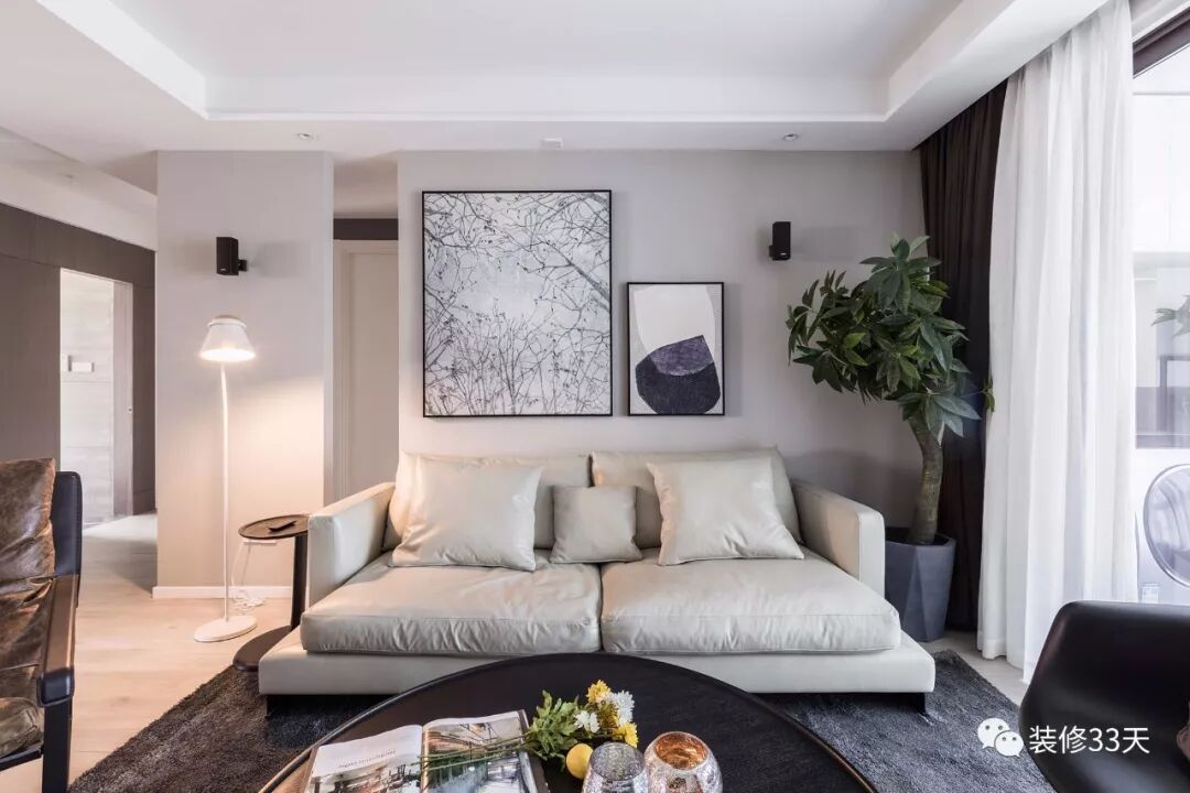▲ 使用面积110平,整体设计通过对黑白灰的运用,塑造简约明快的居家空间