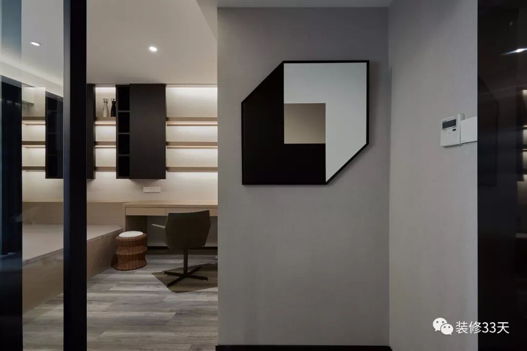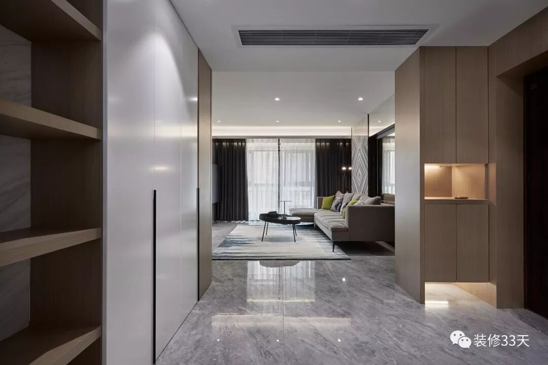 ▲ 建筑面积123平,以置顶组合柜作入户端景,不同材质的结合层次感强