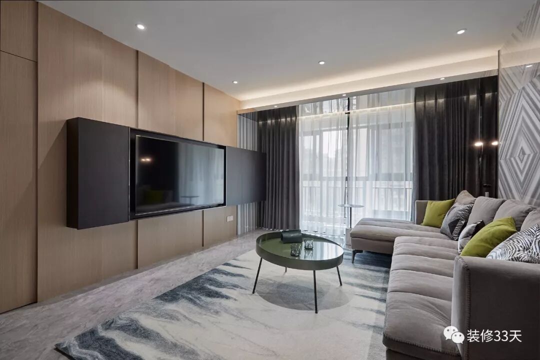 ▲ 电视背景墙高低错落,保留储物功能的同时带入了当代设计流行元素