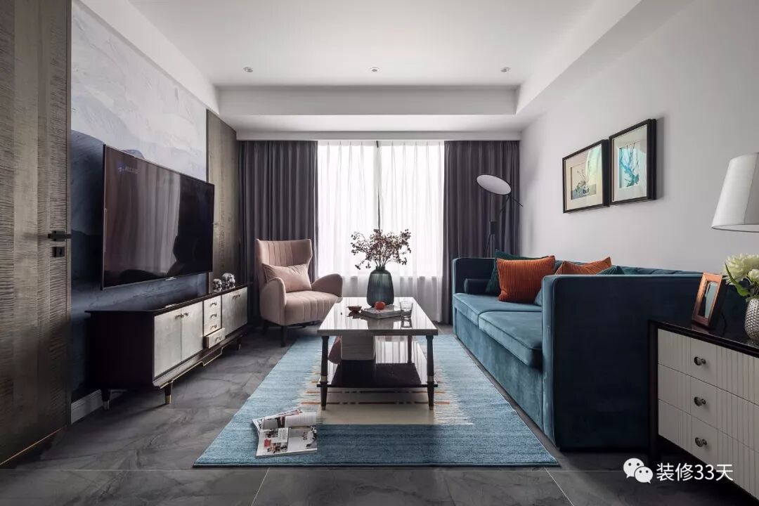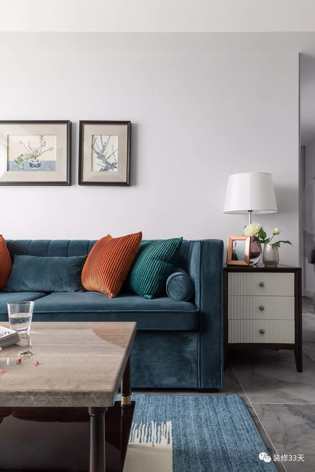 ▲ 室内面积95平,进行合理的空间利用,量身定制家具,通过色彩点缀,创造舒适惬意美式风