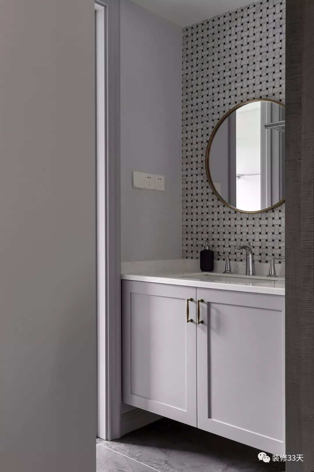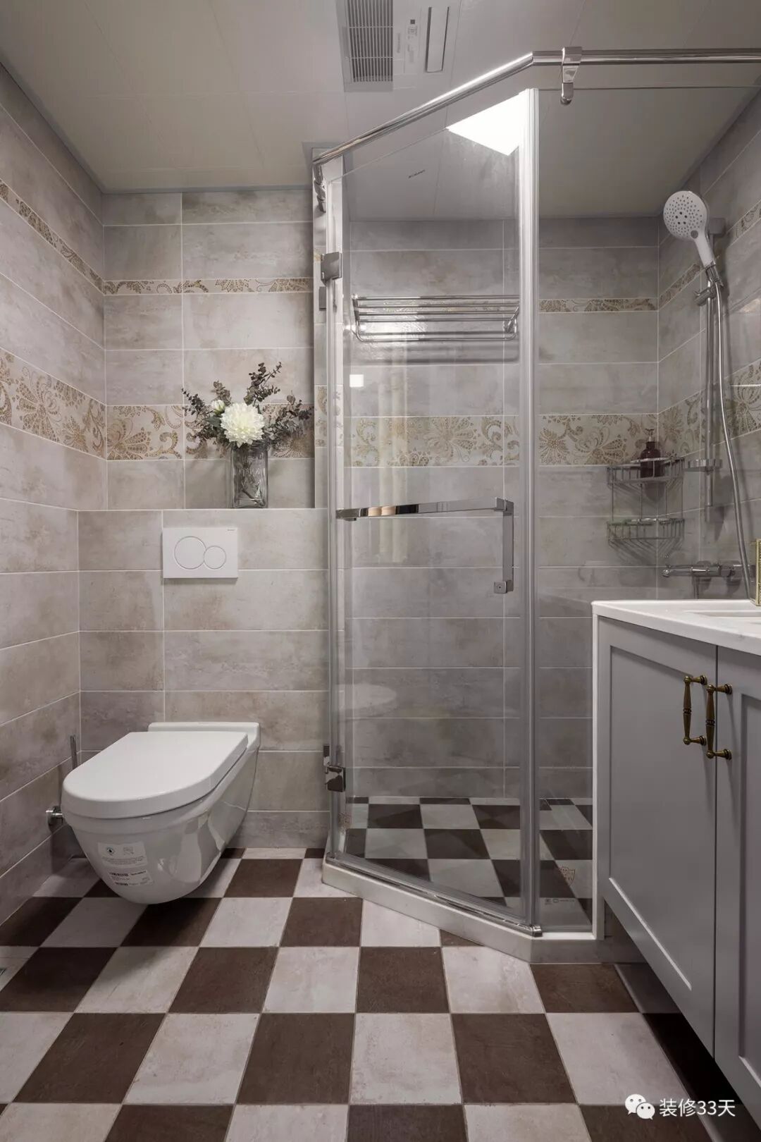 ▲ 主卫选择和主卧整体风格相匹配的颜色,地面瓷砖选用棕色、灰色格子效果