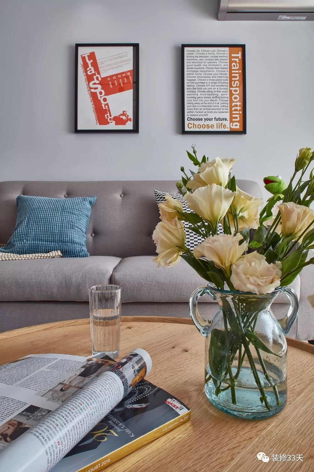 ▲ 客厅,一席厚软的高级灰沙发、一张提亮空间的明黄单人沙发椅和一张不占据位置的原木茶几,轻松勾勒出居家舒适度
