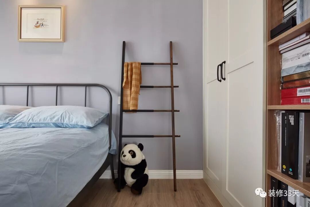 ▲ 整面墙的衣柜承担空间收纳责任,床头柜轻巧方便移动