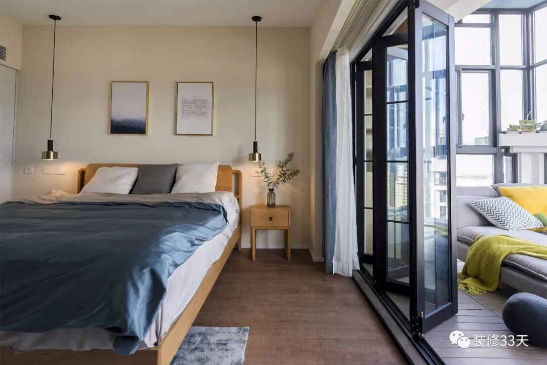 ▲ 与阳台采用玻璃折叠门隔断,使主卧空间显得格外宽敞明亮