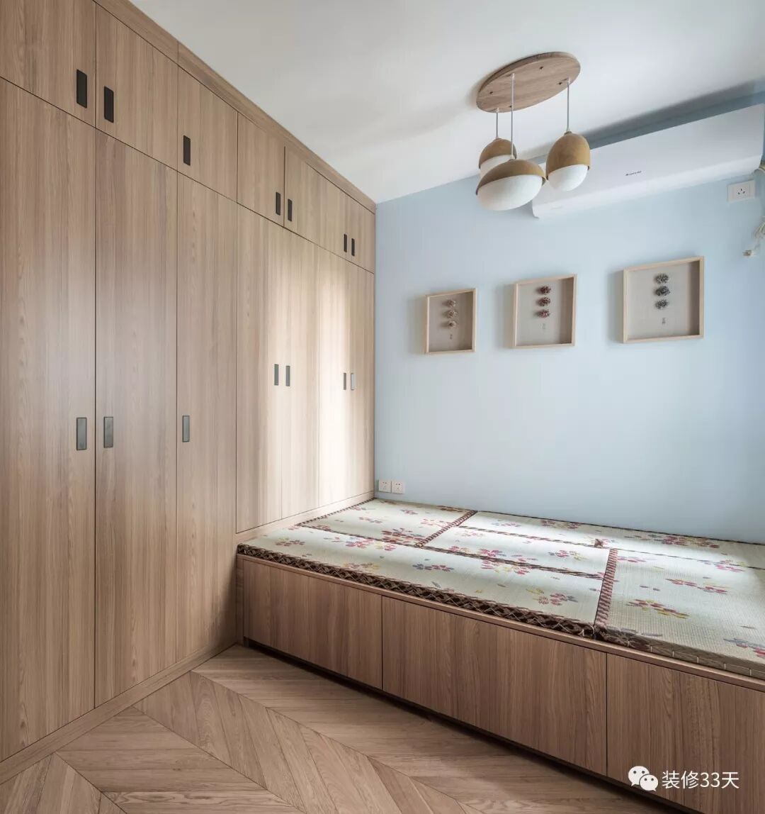 ▲ 多功能房,榻榻米的设置满足临时居住的功能,整墙衣柜是这个家庭里最大的收纳工具