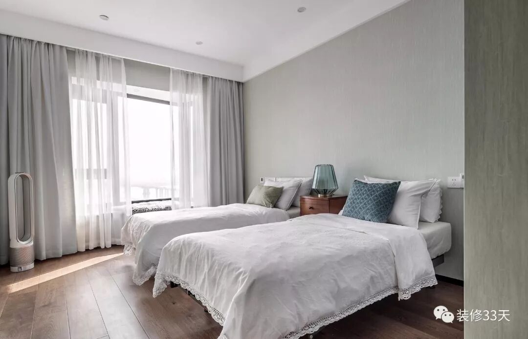 ▲ 客卧,灰绿色空间,放置两张单人床,满足家里来客时的居住需求