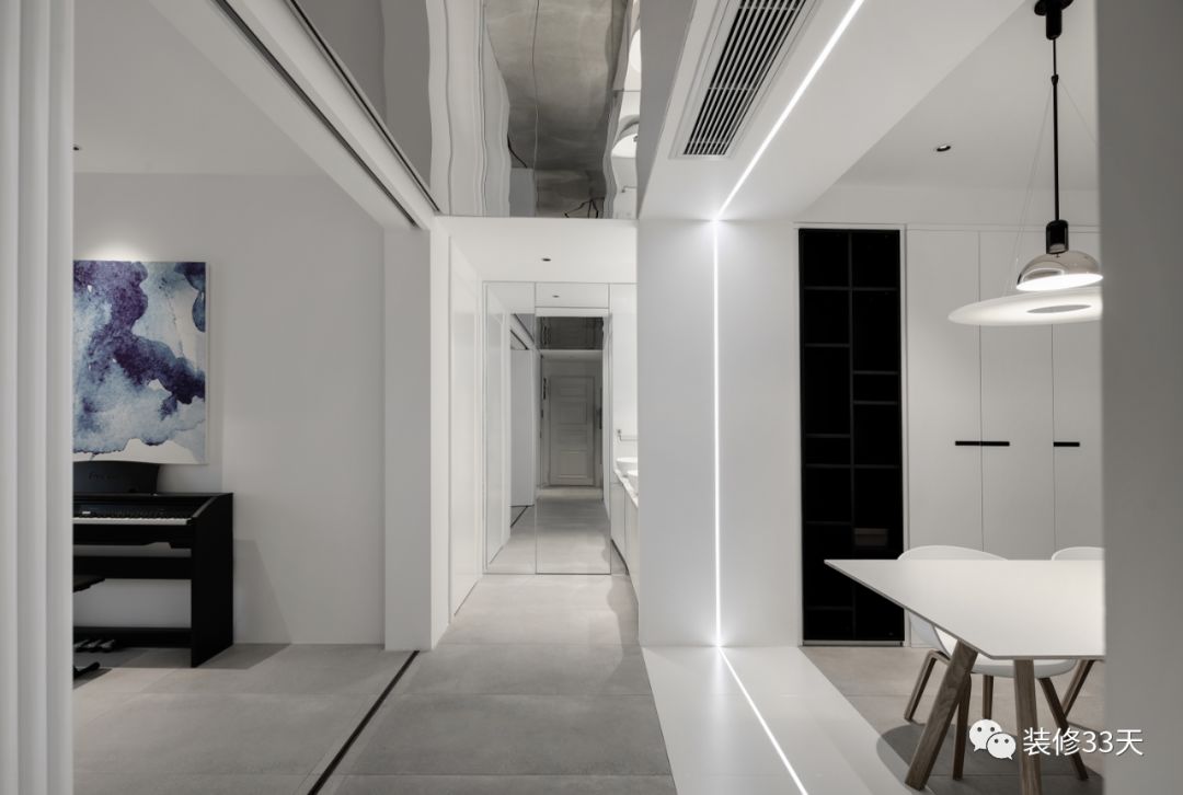 ▲ 从过道进入客餐厅场域,做一圈围合型灯带,形成光圈,赋有超强设计感