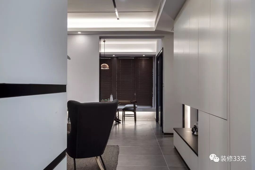 ▲ 整个空间由进门廊道Y轴作为起点展开,玄关处设置一组鞋柜,预留的空间兼顾美观性,内嵌柔和灯带