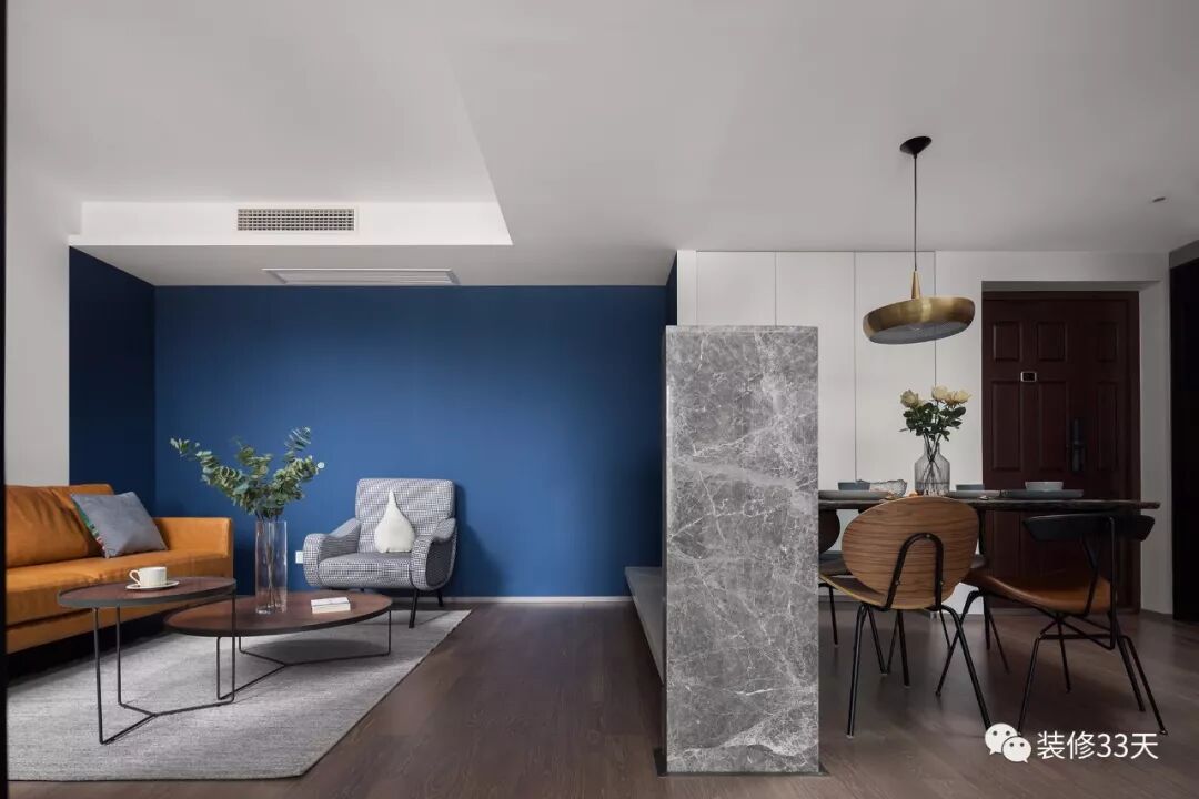 ▲ 建筑面积88平,总造价30万,将原结构的次卧与客厅空间互换,大理石矮墙作电视墙,分隔客厅和餐厅的同时使客餐厅融为一体