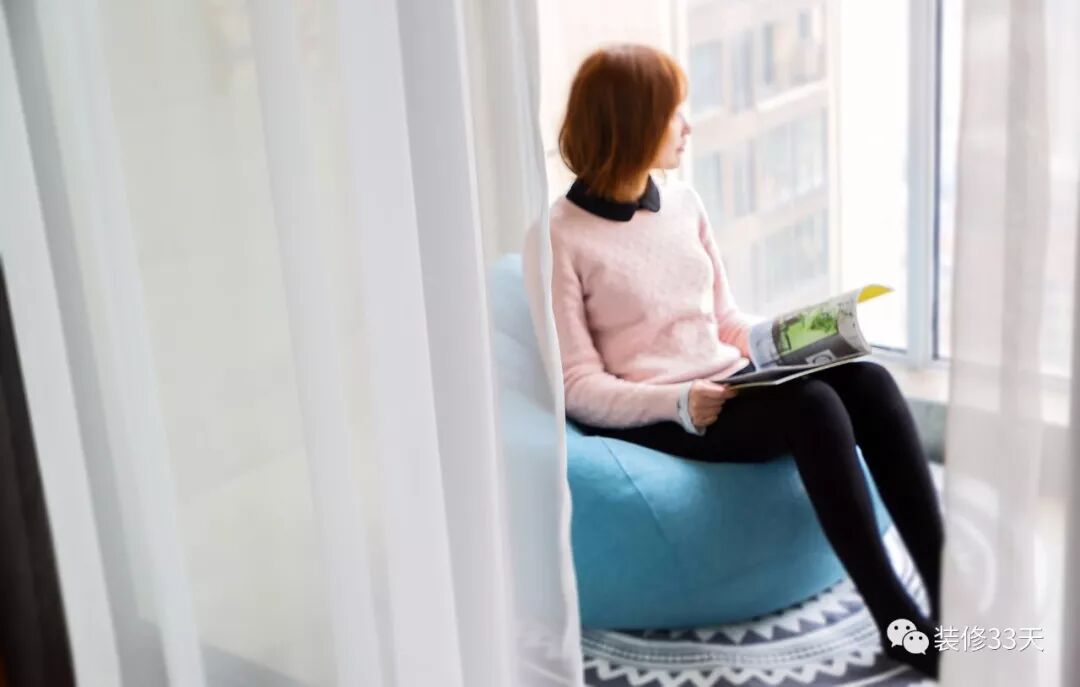 ▲ 阳台铺花纹地毯,摆放懒人椅,成为休憩,阅读,观景的休闲一角