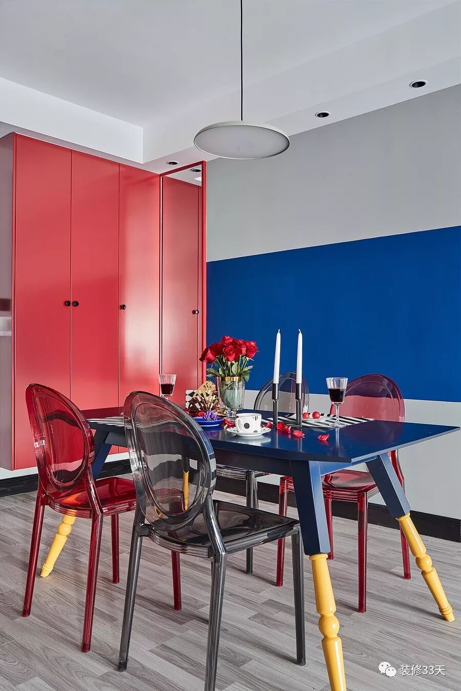 ▲ 建筑面积89平,总造价35万,本案采用个性鲜明的色彩相遇,强烈的撞色效果带起一阵骚动的青春时尚气息