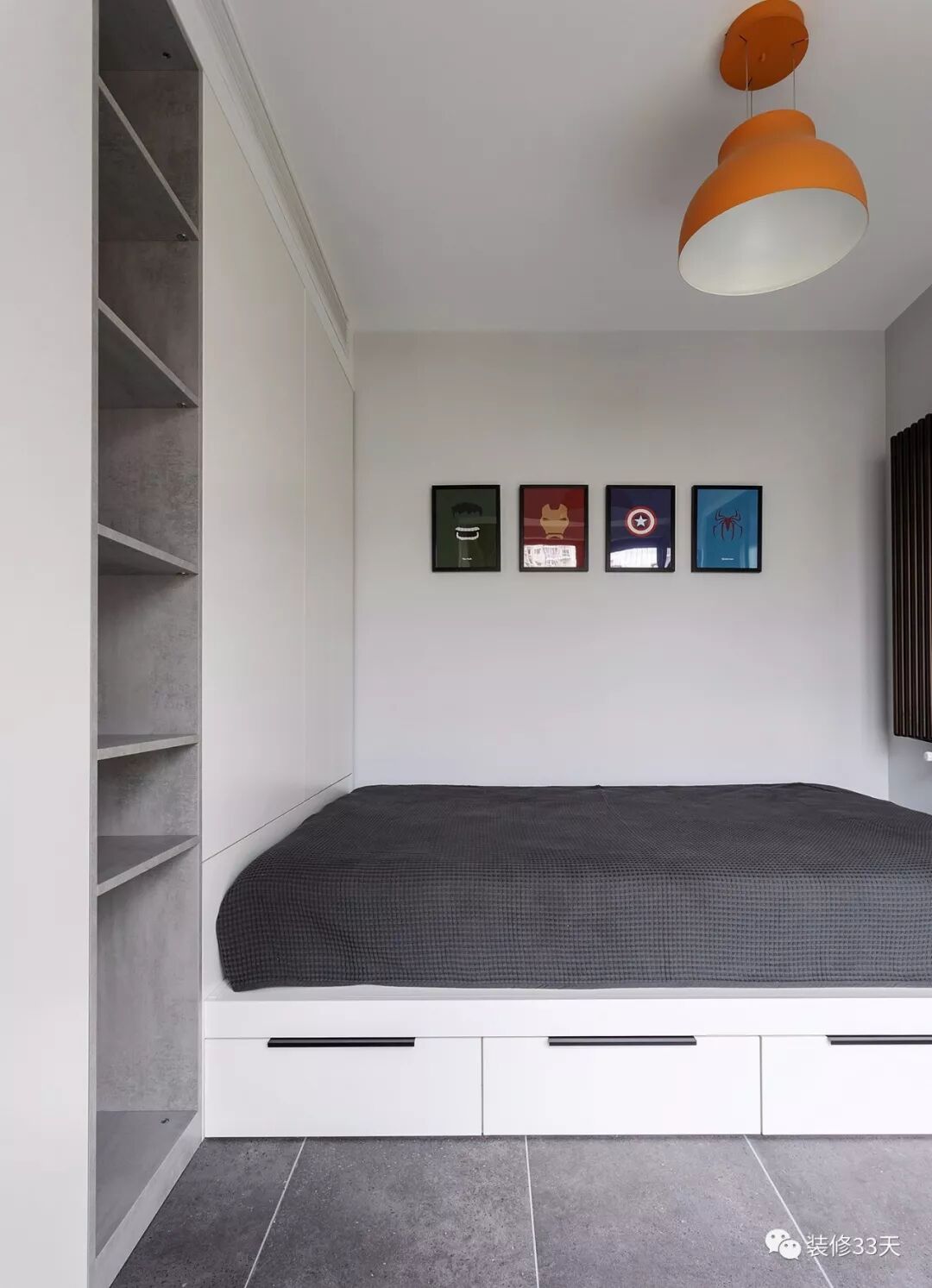 ▲ 儿童房,丰富的储物空间,置物格和榻榻米的结合,用明与暗的两种方式让孩子从小整理好自己的生活