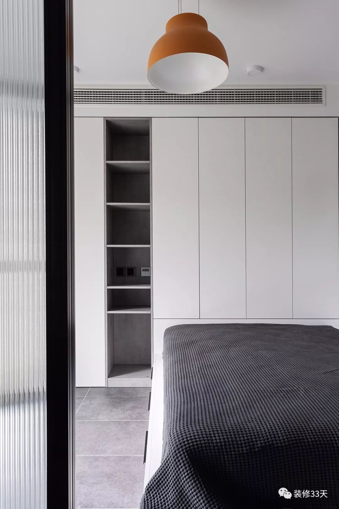 ▲ 黑白灰的基调中,加入一盏暖橘色吊灯,打破居家冰冷感