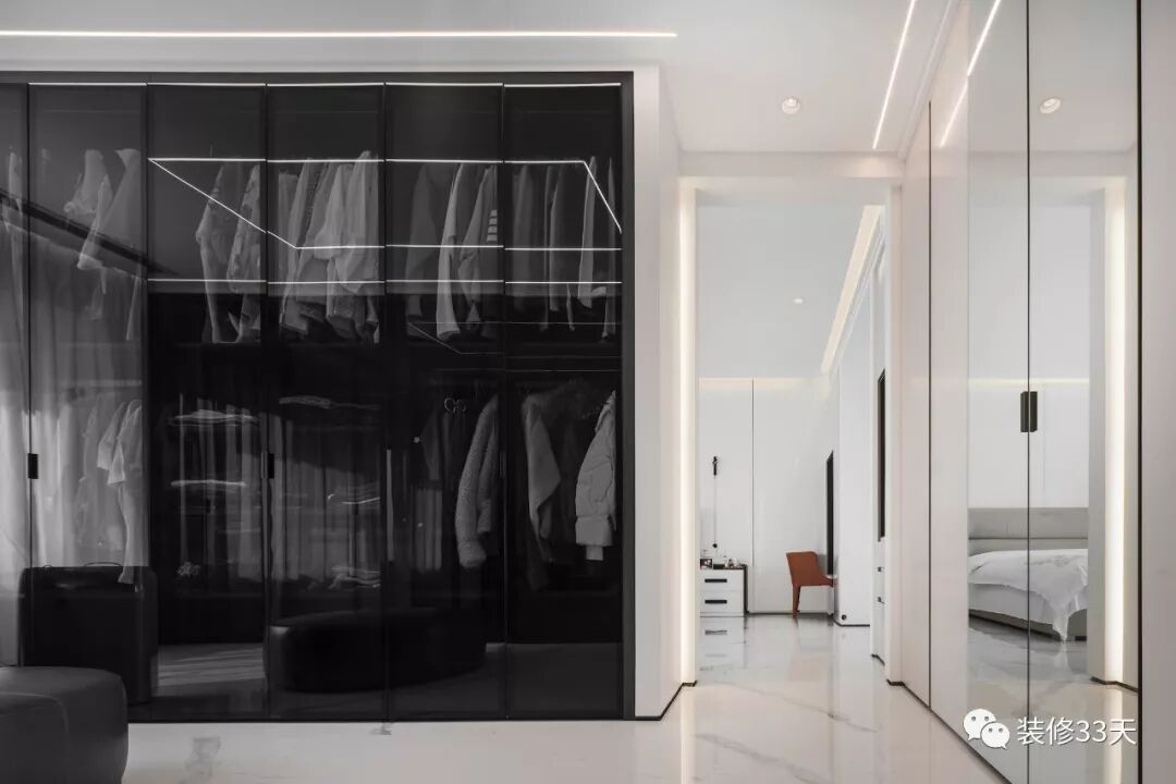移门还是那个移门,这主要想说的是玻璃,不同的玻璃会有不同的效果和气质。比如相比于普通玻璃来说,有两种「网红」玻璃,长虹玻璃和黑玻。
