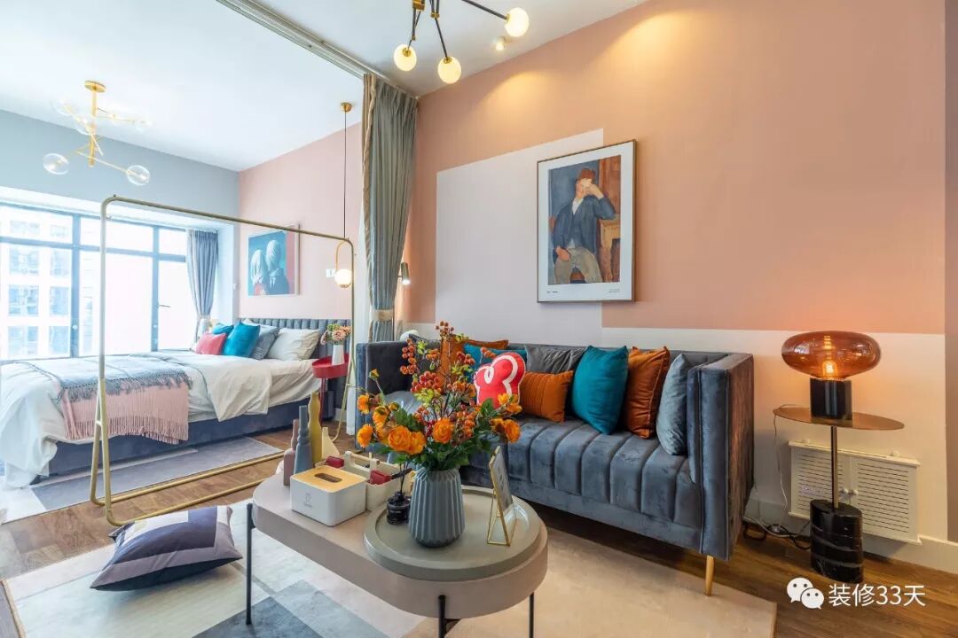 ▲ 建筑面积35平,公寓改造总价8万元,业主希望通过较低的成本,以软装为主导,改变并打破以往的保守思路,追求软装与硬装的色彩融合