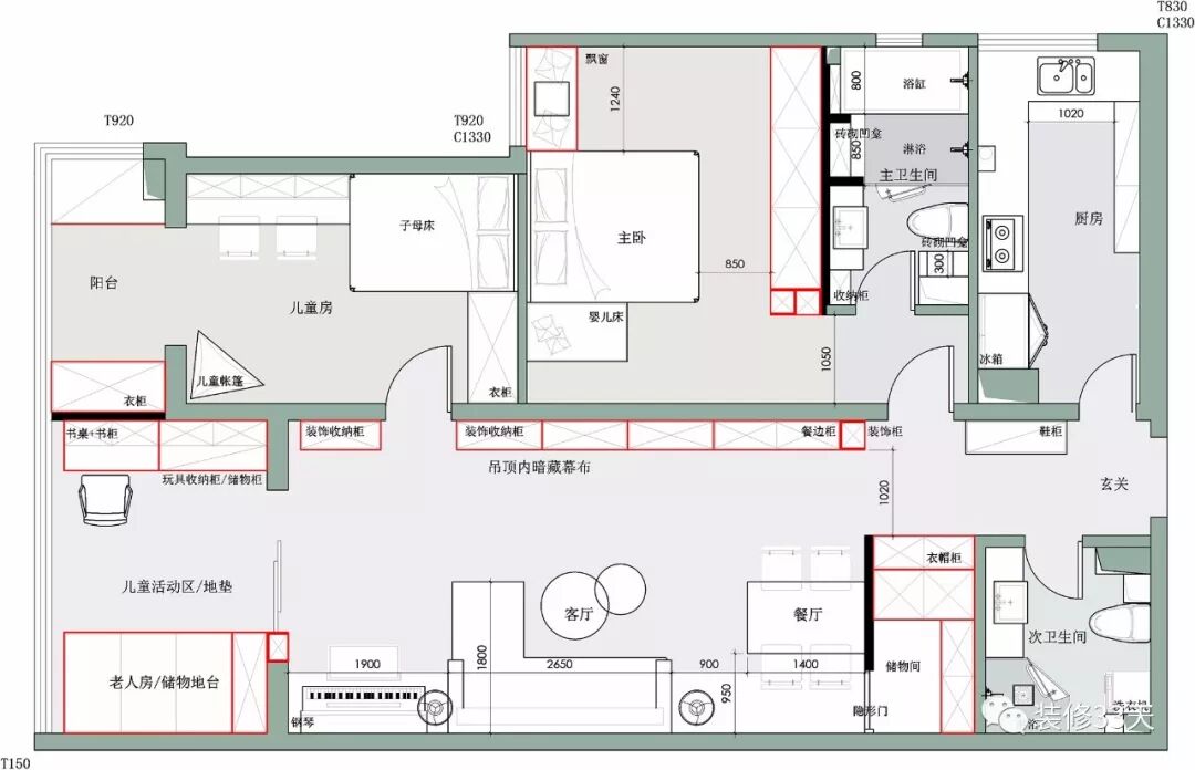 ▲ 这里未改造前是一个阳台,面积以及活动范围适合,将此处改造成为老人的休息室,也是孩子玩耍的地方,书桌和壁柜让空间充分利用了起来