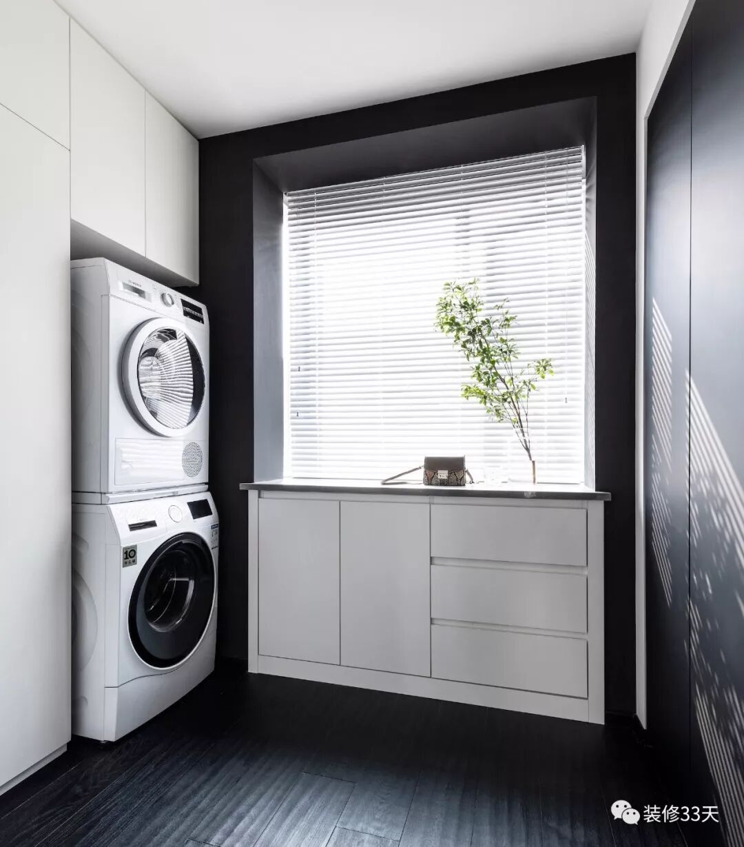 还有人把洗衣机和干衣机直接做到衣帽间里面的,这样的话换下衣服直接丢进洗衣机,洗完衣服烘干之后,直接可以收起来进衣柜了。