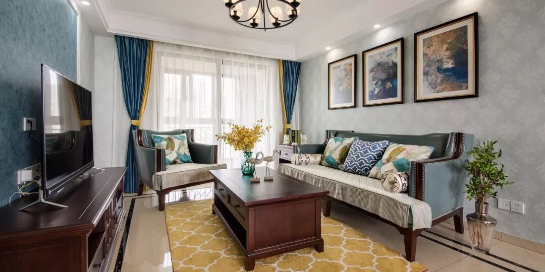▲ 沙发背景墙与餐厅之间采用“半墙”的设计,在视觉上增加其通透感与空间感