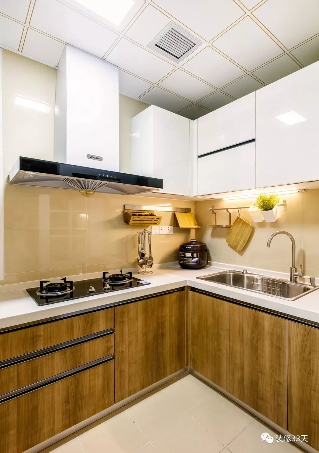 ▲ 厨房采用了木色和白色的搭配,干净,明亮