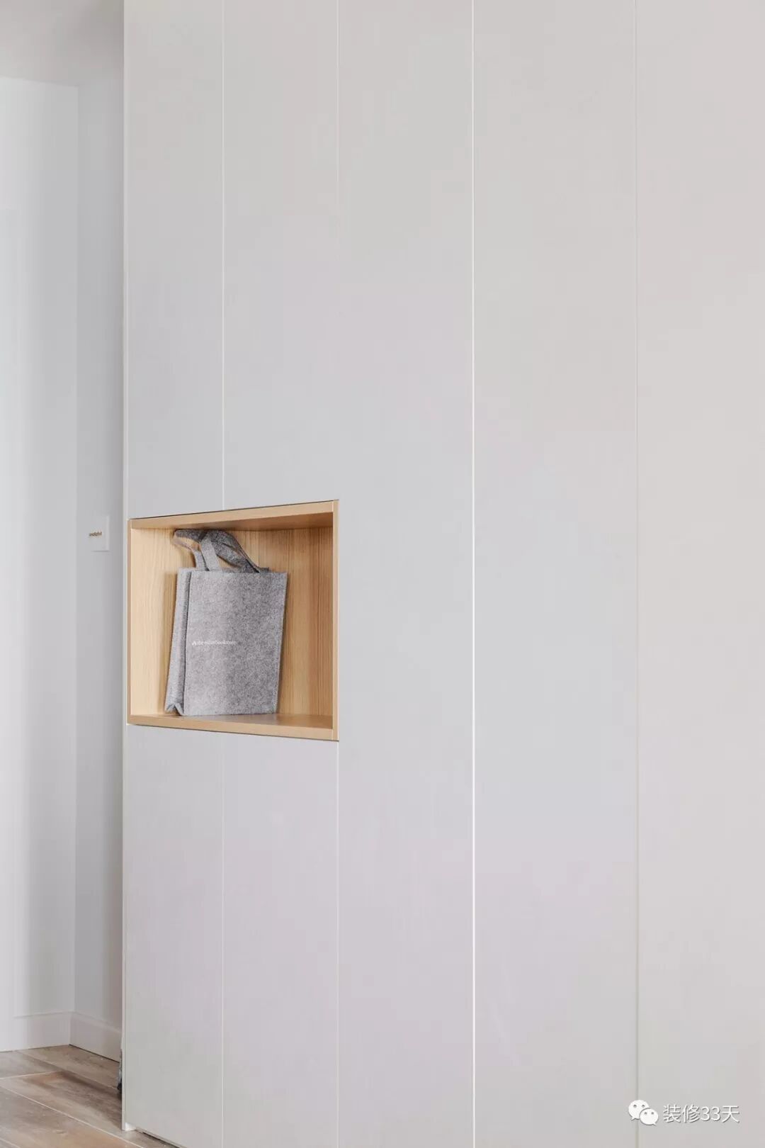 ▲ 玄关,极简置顶白色储物柜,中间部分留空辅以木色修饰,可随手置物