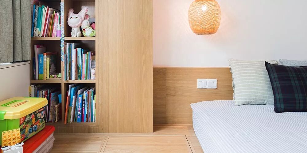 ▲ 次卧整体以榻榻米的形式呈现,借鉴和室的造型移门,榻榻米下方即是超大容量的收纳空间