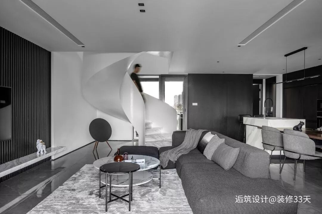 ▲ 设计感极强的环形楼梯,提升空间格调与颜值