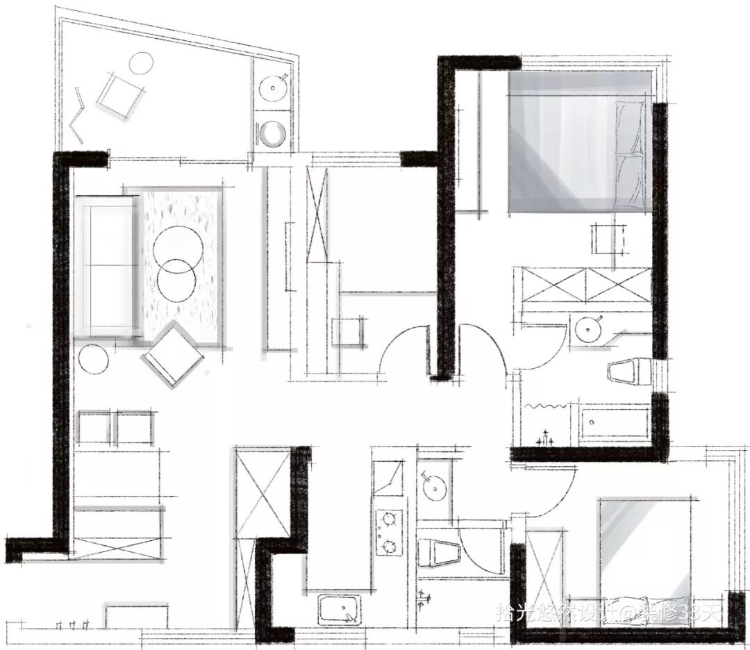 ▲ 建筑面积120平,总造价40万,进门利用生活阳台改造出美观实用的入户玄关,文化砖背景+悬空式玄关柜,下方铺白色石子增加意境