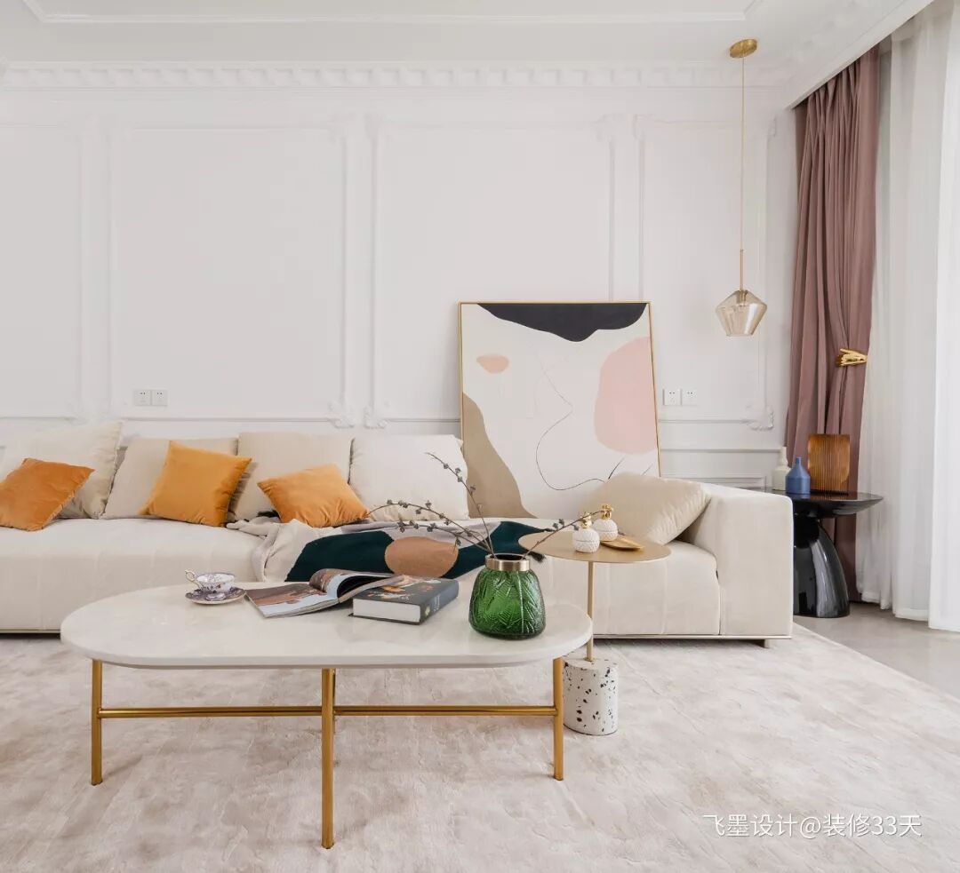 ▲ 客餐厅以过厅为分界,两个空间的软硬装相互呼应,呈现业主心中的轻法式浪漫