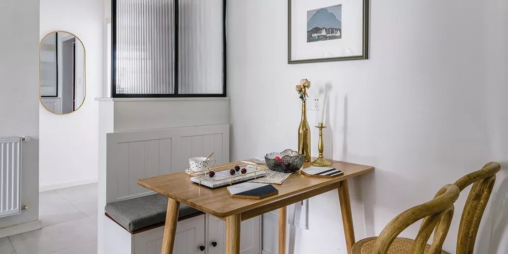 ▲ 整个空间无过多储物空间,空间变的宽敞许多,温莎长椅搭配北欧风绿植,打造休闲一角