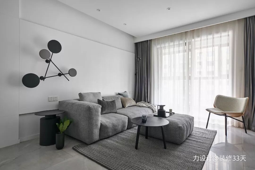 ▲ 客餐厅互通,整体以黑白灰为基调,融入原木调作为点缀,提升视觉暖度