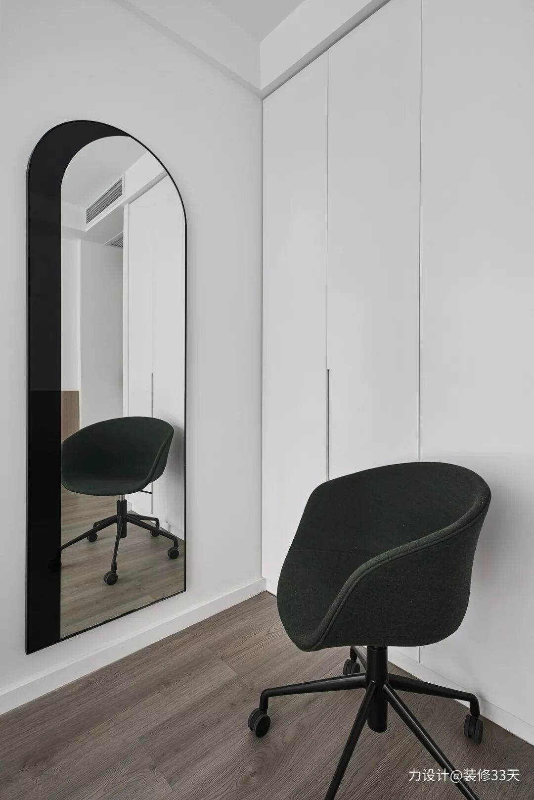 ▲ 另一侧墙面打造白色置顶柜体,搭配拱形全身镜,让书房兼具衣帽间机能