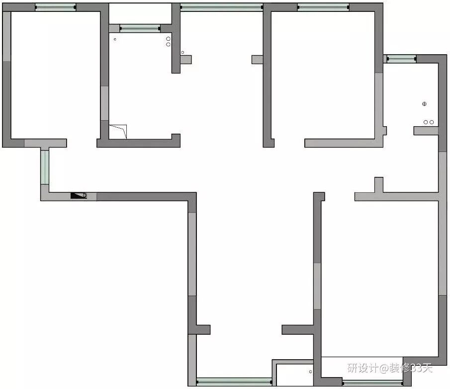 ▲ 将北边小卧室分割出部分空间,设置足够的鞋类储物,剩下作为客卧及书房空间,艺术玻璃黑框门片,透光不透影