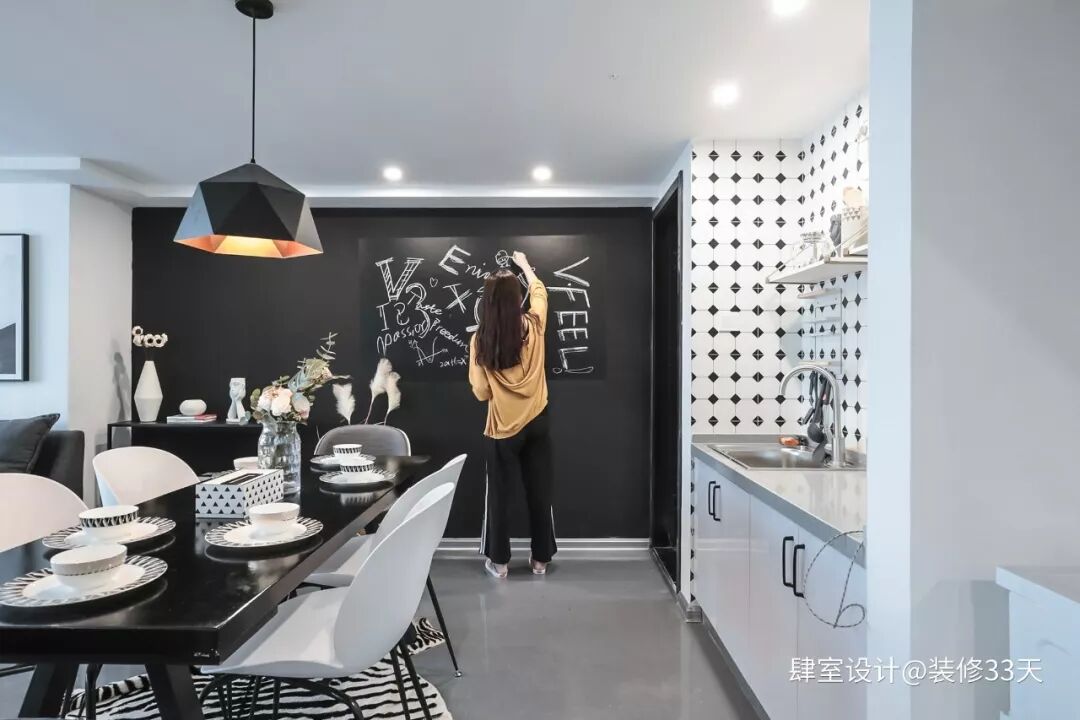 ▲ 选择一面黑板墙打造餐厅端景,随时更换端景主题,也满足随意涂鸦